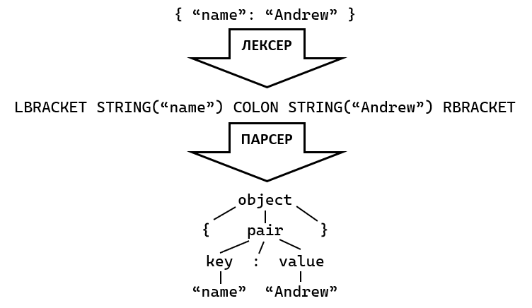 То чому ж? А тому, що він використовує лексер, тобто спочатку розбиває текст на токени (числа, ідентифікатори, рядки, ключові слова тощо), а потім сам парсер працює безпосередньо з ними. Це найшвидший спосіб парсингу (у нього практично завжди стабільна лінійна швидкість, O(n)
