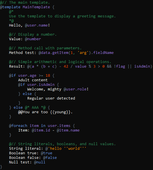 Одного разу я розробляв свій сайт для мультиплеєрних текстових квестів для гри з друзями, а майстром був DeepSeek. Сайт робив на Blazor, а в бекенді було дуже багато інтерполяцій рядків для промптів. Мене ці інтерполяції так розлютили, що в підсумку народилася ідея шаблонної мови спеціально для LLM, подібного до Razor:
