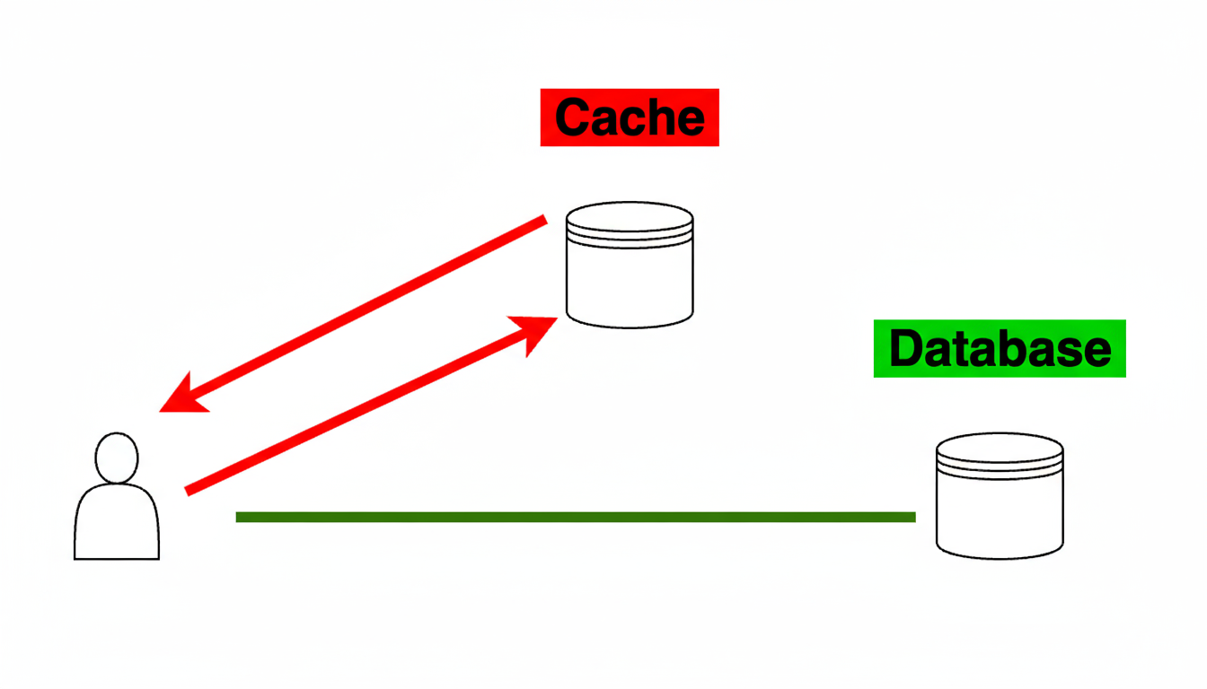 Однак, якщо дані відсутні в кеші, відбувається промах кешу (cache miss), і тоді додатку доводиться виконати додаткову роботу: запитати дані з бази даних, повернути їх клієнту і зберегти в кеші для забезпечення попадання в кеш при наступних зверненнях до цих саме даних.