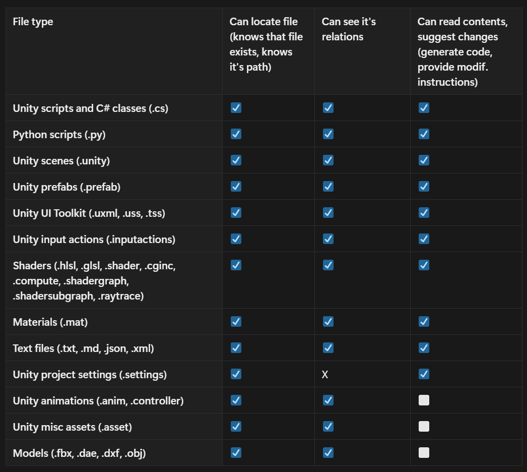 - Розуміння устрою ассетів -> читання, аналіз, генерація рекомендацій, рішень та правок.